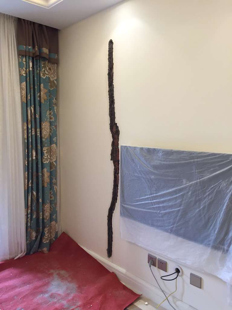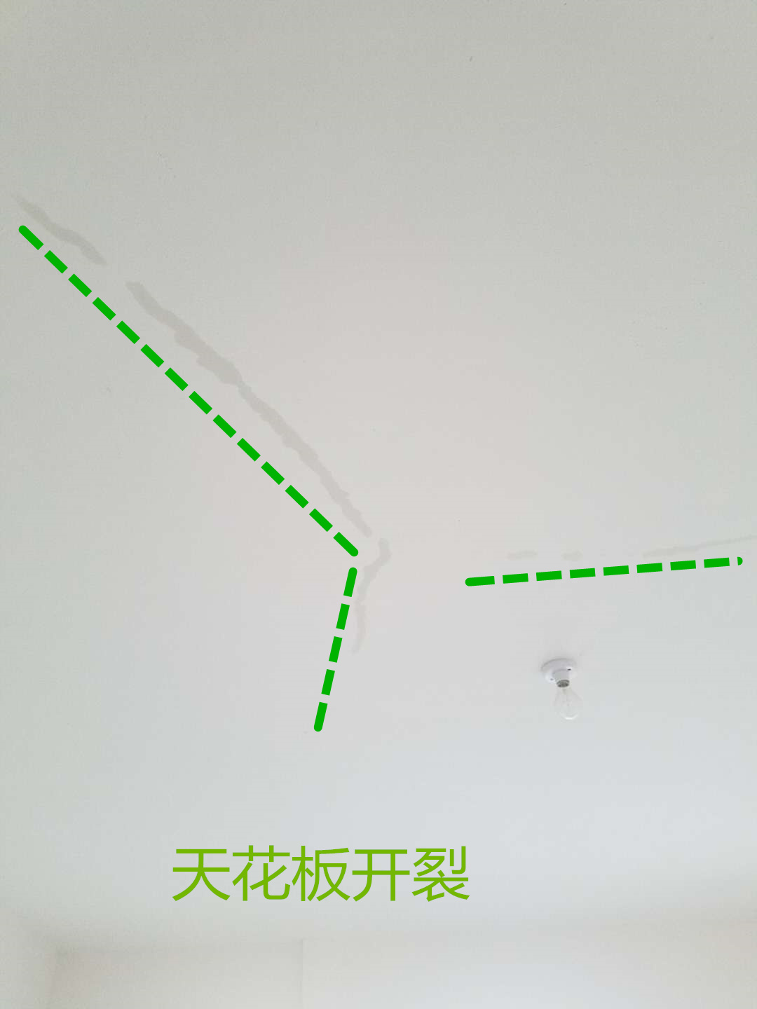 顺裂缝倒水以后在楼下天花板位置看到的景象~~~裂缝比较长比较规则~~~