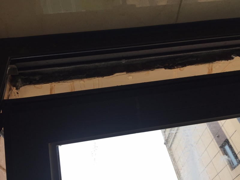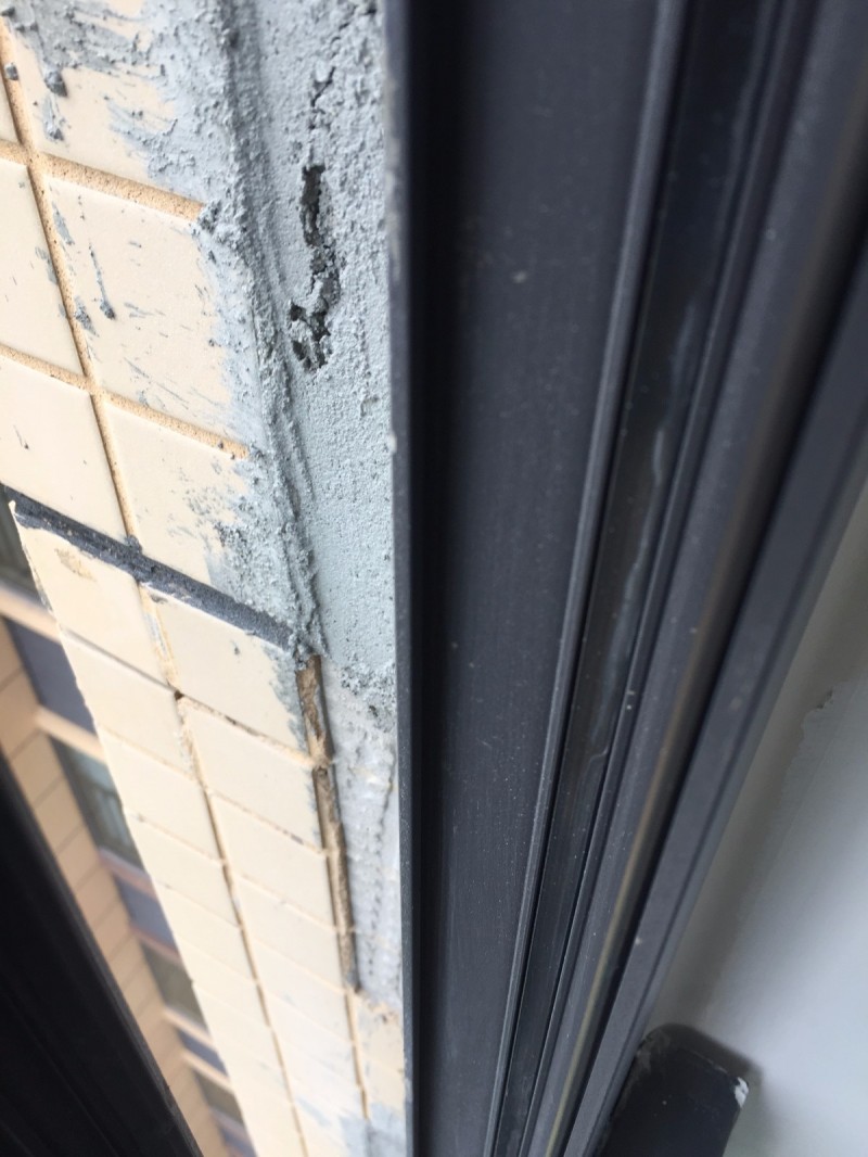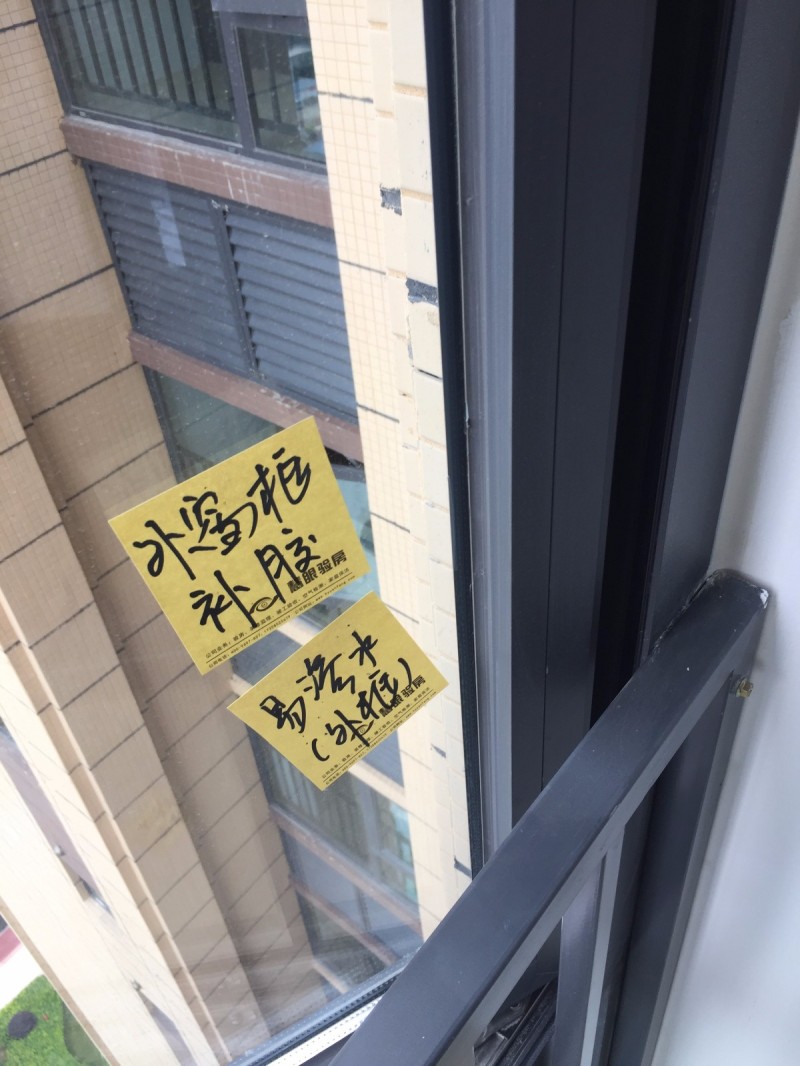 打开窗户发现外窗框修补过以后竟然没有打防水胶,这样的话一旦下雨雨水就会渗进来,过不了多久里面的腻子就会有明显的水迹,进而导致油漆脱落、泛碱严重影响装修效果。