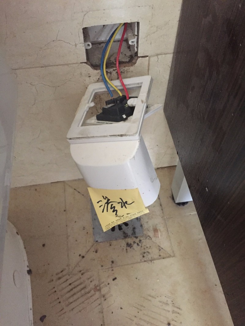 这个就比较~~~据说当时验房师本来想揭开插座的防溅罩测试一下电路,不曾想刚打开水从插孔里流了出来,这也着实吓了我们验房师一跳!